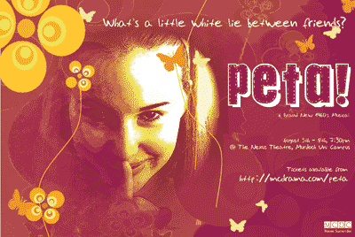 Peta! The Musical is a fun-filled original comedy set in Perth during the late 1960's. With a cast of 34, Peta! is about a young woman desperate to escape her tyrannical mother in the country and pursue her dream of a singing career. She only achieves this through a very complicated system of lies that - like the Titanic - "simply can't go wrong". When faced with exposure by her enemies, she improvises a solution in the form of the most embarrassing engagement party of all time. In the process, she discovers a lot about herself, relationships, honesty and mythical Greek creatures. The show sparkles with 17 famous songs from Motown!