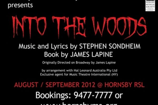 Performance dates for INTO THE WOODS at the Hornsby RSL will be Friday 24th August @ 8pm, Saturday 25th August @ 8pm, Sunday 26th August @ 2pm, Friday 31st August @ 8pm and Saturday 1st September @ 2pm and 8pm.